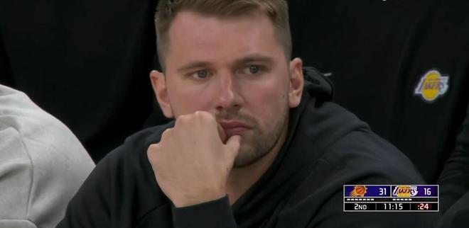 湖人首节落后15分,东契奇场边观战眼神空洞