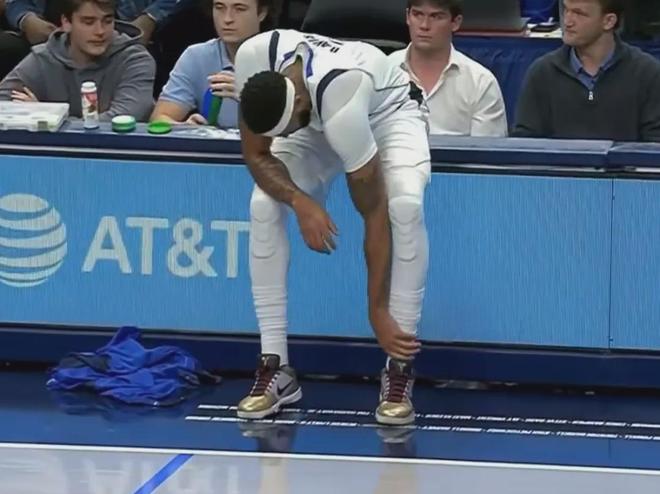 首节只打了6分钟左右,浓眉哥突然受伤,他缓缓走回场边坐下,扶住了自己的左脚踝,看上去非常吓人,很难不联想到跟腱问题。