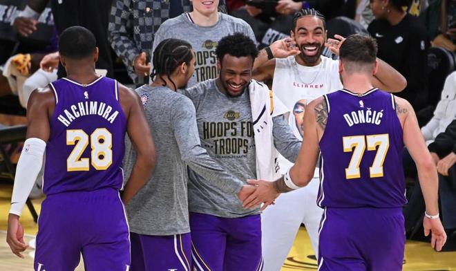而东契奇,无疑是本场最耀眼的明星,35分9篮板13助攻5抢断2盖帽!他不仅在进攻端几乎无所不能,在组织、篮板和防守中也贡献卓越,更难得的是,在犯规困扰下,他依然能保持冷静,带领球队在逆境中反超,东契奇的比赛掌控力与关键时刻的稳定性,让人看到一名超级巨星的成熟与担当,他不仅是湖人的现在,更是球队未来争夺总冠军的核心基石
