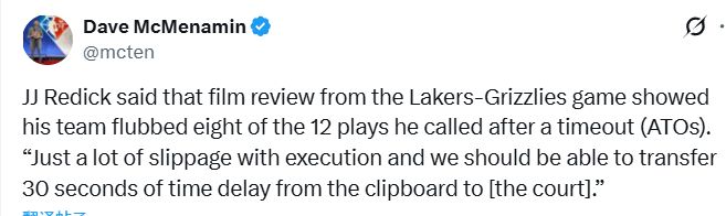 “昨天我们跑了12次暂停后的战术(ATO),其中8次没跑对;有2个战术又试了一遍,还是没跑对;有1个战术试了第三次,照样没跑对。执行上的失误太多了——按理说,把战术板上的内容花30秒转述给球员,应该能落实的,这点挺让人沮丧。”