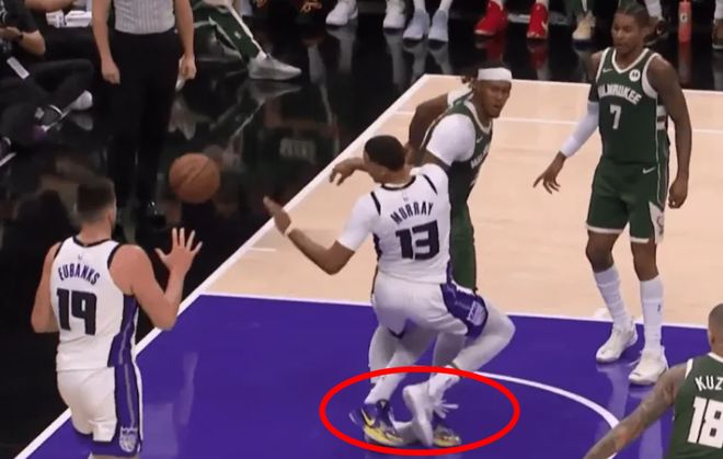 易边再战,罗林斯里突外投连得5分,雄鹿73-48已领先国王25分。威少突施冷箭接球三分命中,随后突破上篮再得手止血。小波特里突外投又连拿5分,字母哥轻松上篮也进,分差拉开到26分。此时意外突发, 基根-穆雷踩到特纳的脚90度崴脚,无法行走,遭遇重伤离场。威少突破造犯规,施罗德有样学样又造三分犯规,随后威少压哨补篮命中,三节打完,国王69-85追到16分分差。