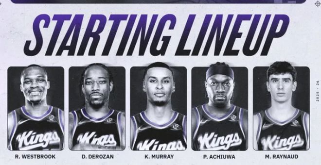 首发阵容方面,雄鹿队这边,字母哥带伤出战,老里弗斯排出的最新首发五人组为:小波特、罗林斯、AJ-格林、字母哥、特纳;国王队这边,萨博尼斯继续缺战,拉文迎来复出但替补出战,首发阵容则为:威斯布鲁克、基根-穆雷、德玛尔-德罗赞、普雷舍斯-阿丘瓦、马克西姆-雷诺。