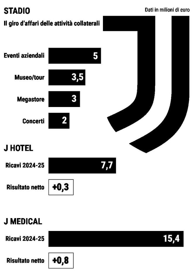 医疗中心J Medical于2016年通过与圣克拉拉集团成立合资公司启用,尤文图斯持股50%。2024-25赛季,该机构营收达到1540万欧元,同样刷新纪录,净利润为80.7万欧元。由于采用权益法并表,这部分收入并未直接计入俱乐部主营财报。经过近十年发展,J Medical已成为欧洲运动医学领域的重要机构之一,既服务普通市民,也接待职业运动员,同时也是尤文图斯球员的核心保障基地。近期,俱乐部还与沙特阿拉伯卫生部达成协议,计划在沙特建设一家与都灵模式相同的医疗中心。